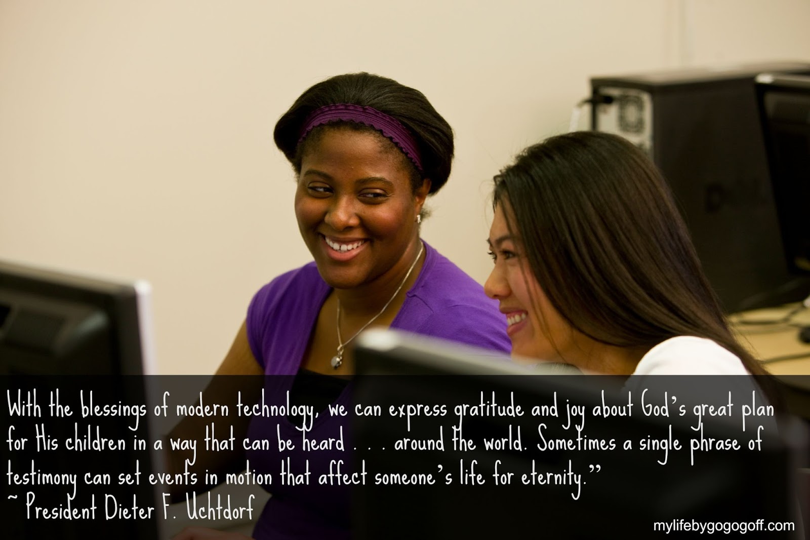 “With the blessings of modern technology, we can express gratitude and joy about God’s great plan for His children in a way that can be heard . . . around the world. Sometimes a single phrase of testimony can set events in motion that affect someone’s life for eternity.”
